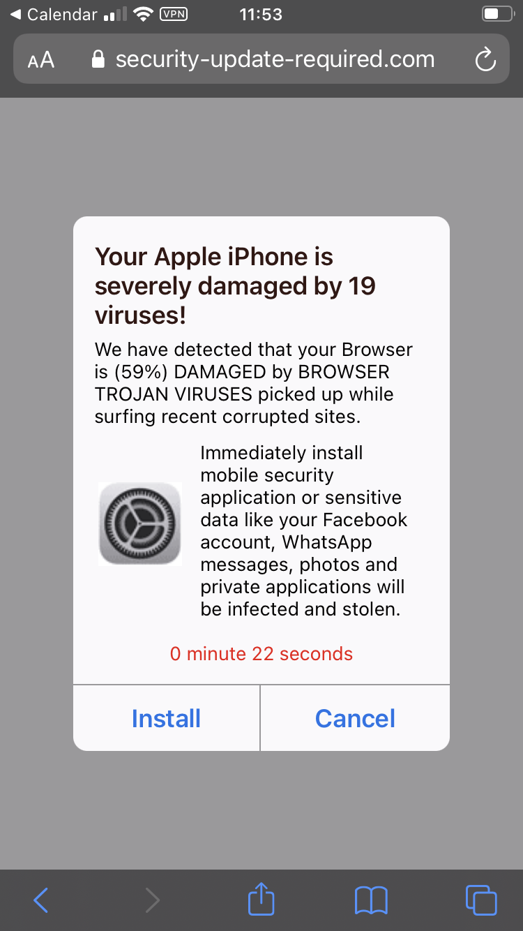 Apple Security has urgently selected the required app which can be downloaded following the link below. Clear your safari history and stop going to any site that tells you your devices is infected Clear your Safari browser history and set up content blockers on your iPhone iPad or iPod touch - Apple Support. This is because you simply cannot install software from just anywhere on your iPhone unless you jailbreak it.