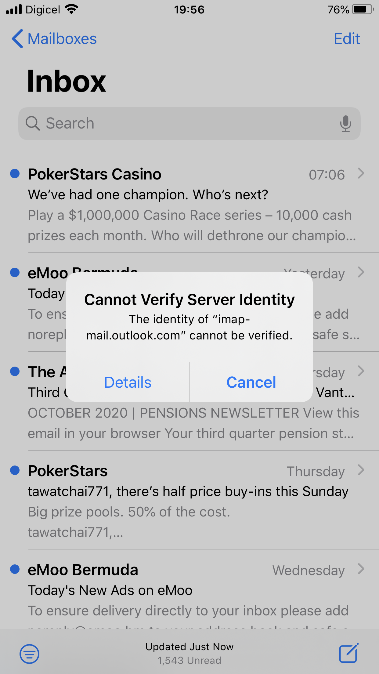 Cannot Verify Server Identity The Identity Of Mail Domain Com Cannot Be Verified Applied Innovations Public Knowledgebase